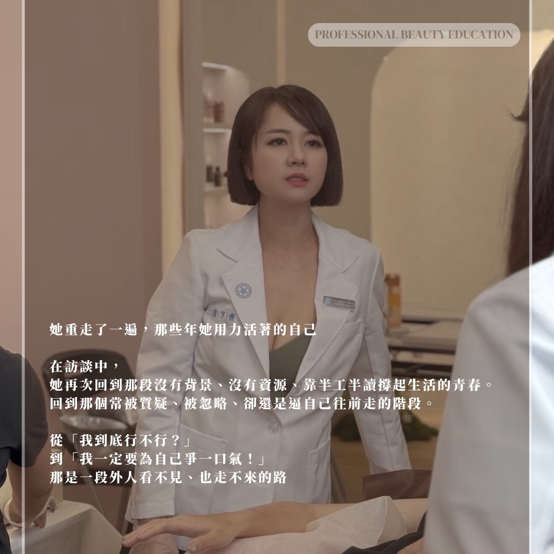 如今竟能以「美業講師」的身分接受訪談。