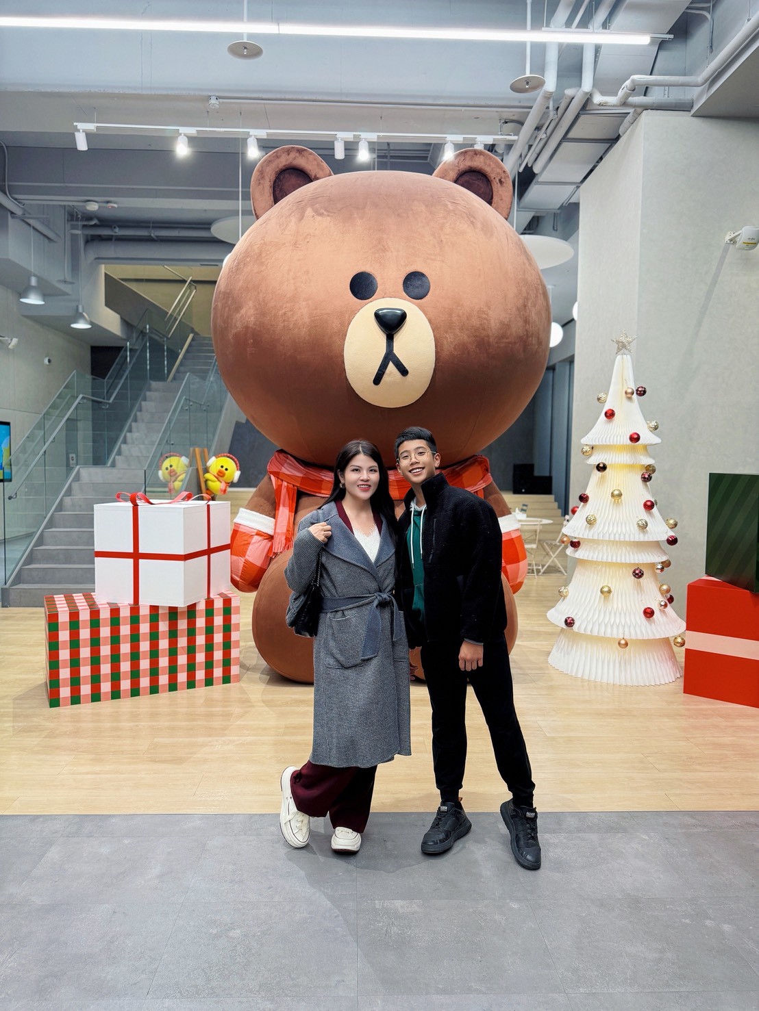 整個環境既專業又有創意。我們也在最具代表性的熊大玩偶前拍了好多照片,那是他第一次這麼近距離看見「大人工作的世界」。