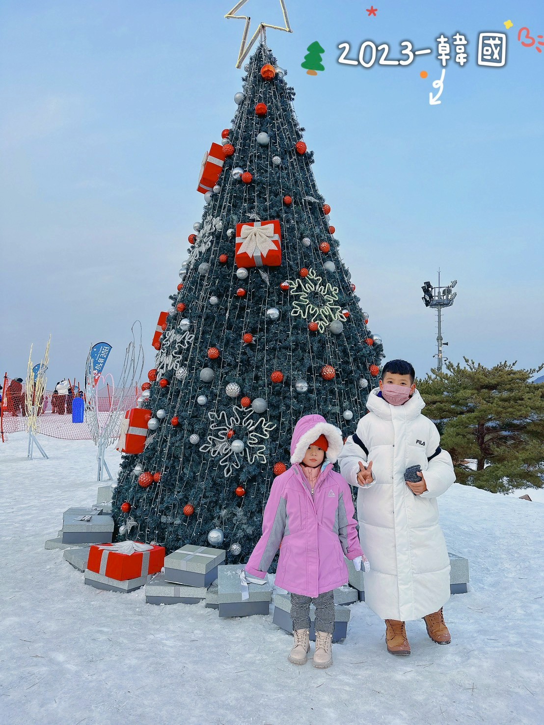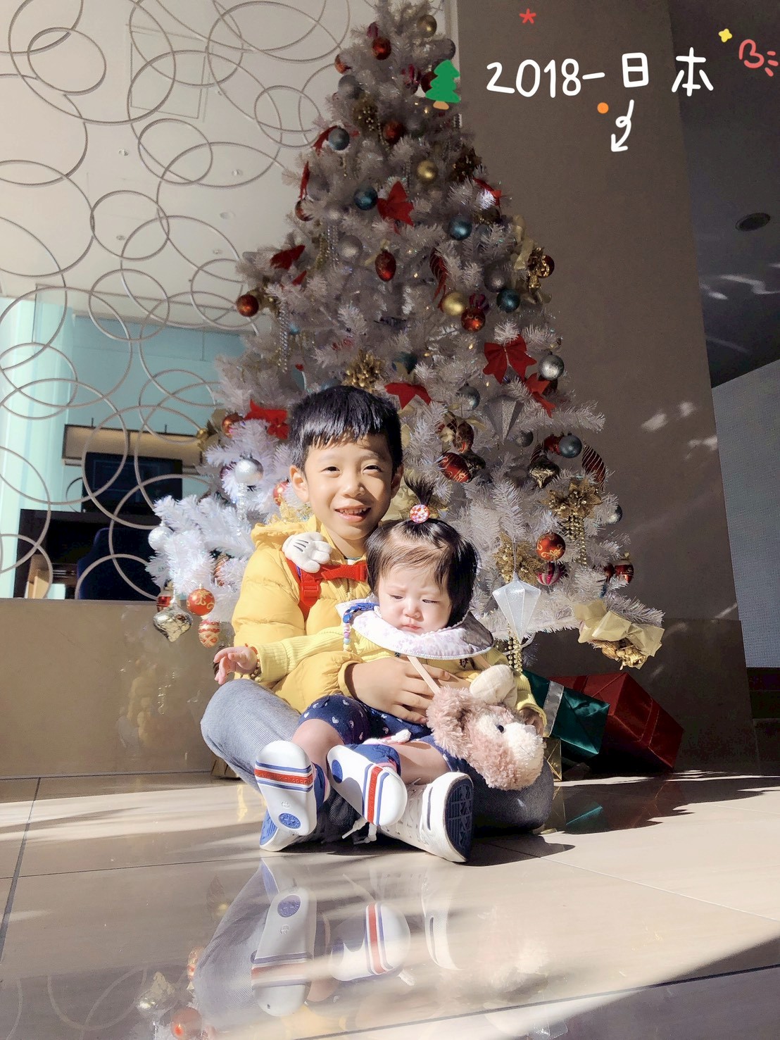 不用出國,不用昂貴,百貨公司也好、地標也好,只要跟聖誕樹拍張照,孩子就會很開心。