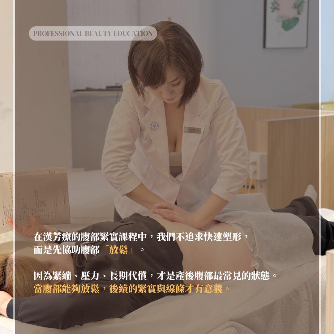 在漢芳療的腹部緊實課程中,我們不追求快速塑形,而是先協助腹部「放鬆」。