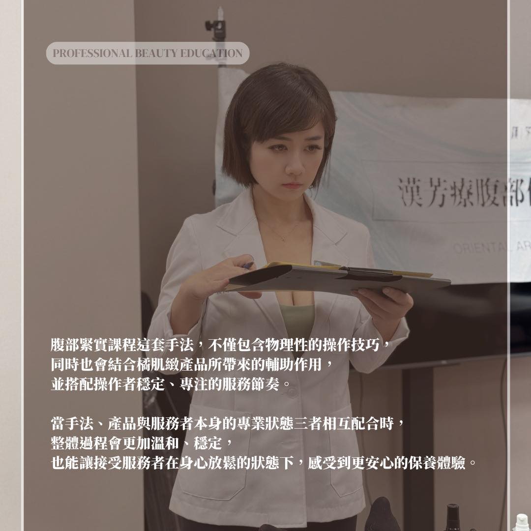 腹部緊實課程這套手法,不僅包含物理性的操作技巧,同時也會結合橘肌緻產品所帶來的輔助作用,並搭配操作者穩定、專注的服務節奏。