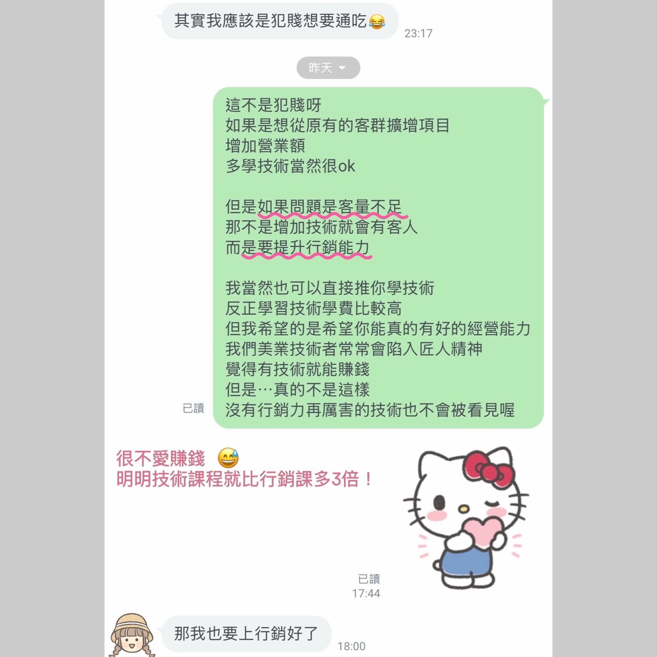 每當有學生諮詢課程,想增加服務項目,我通常不會順著學生直接推銷技術課程。