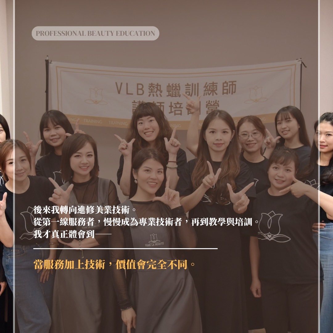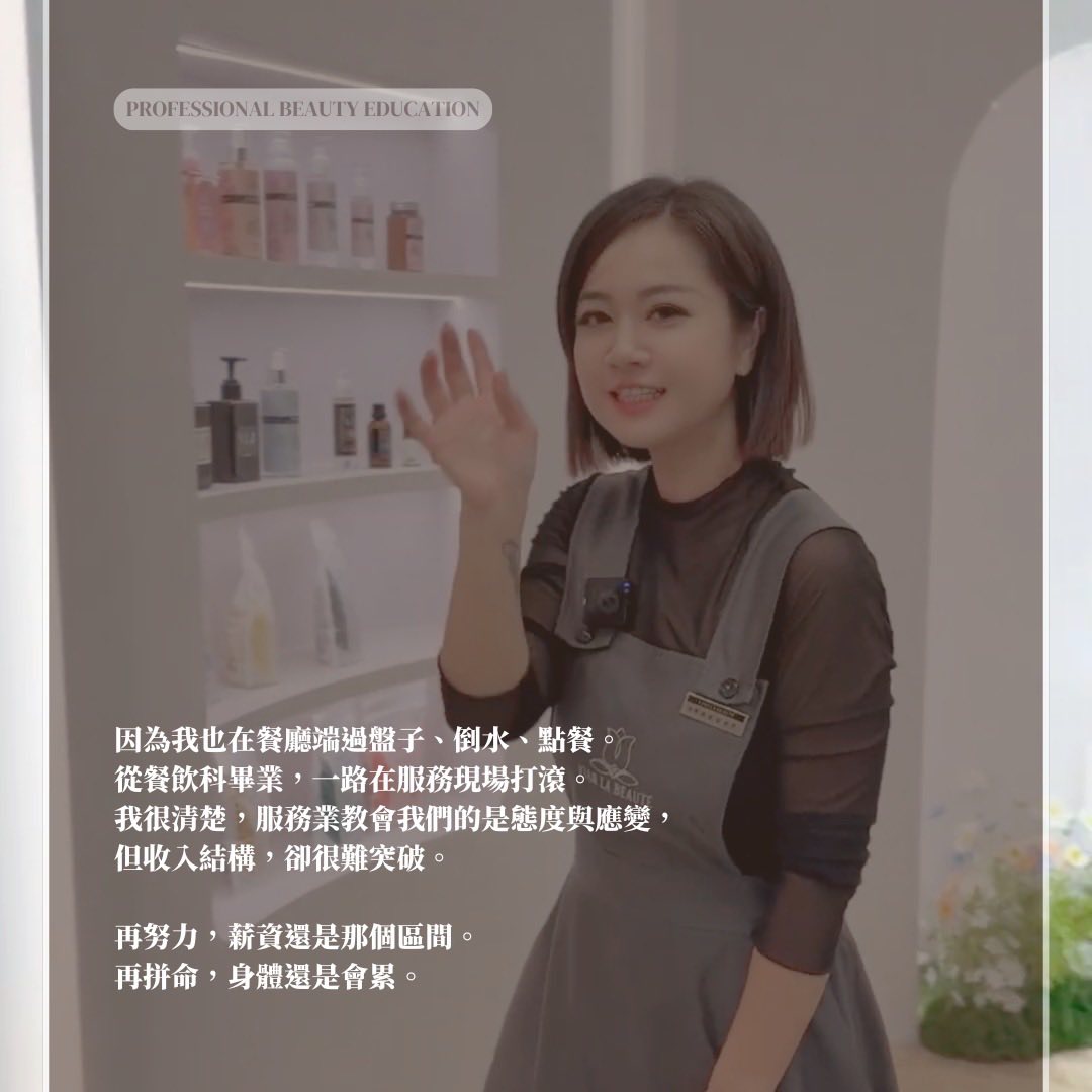 後來我轉向進修美業技術。從第一線服務者,慢慢成為專業技術者,再到教學與培訓。我才真正體會到——