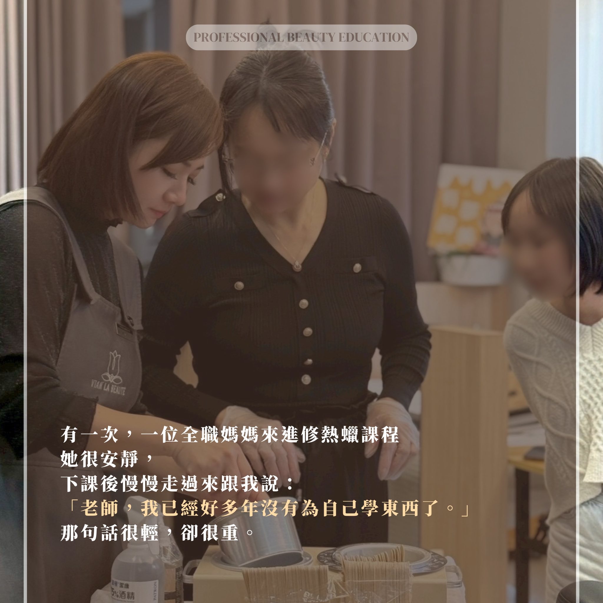 有一次,一位全職媽媽來進修熱蠟課程