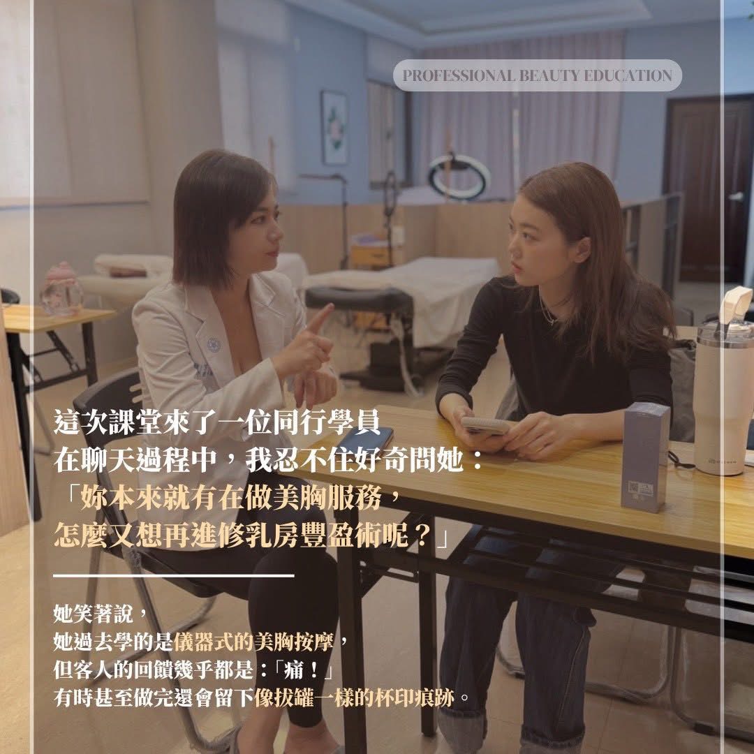「妳本來就有在做美胸服務,怎麼又想再進修乳房豐盈術呢?」