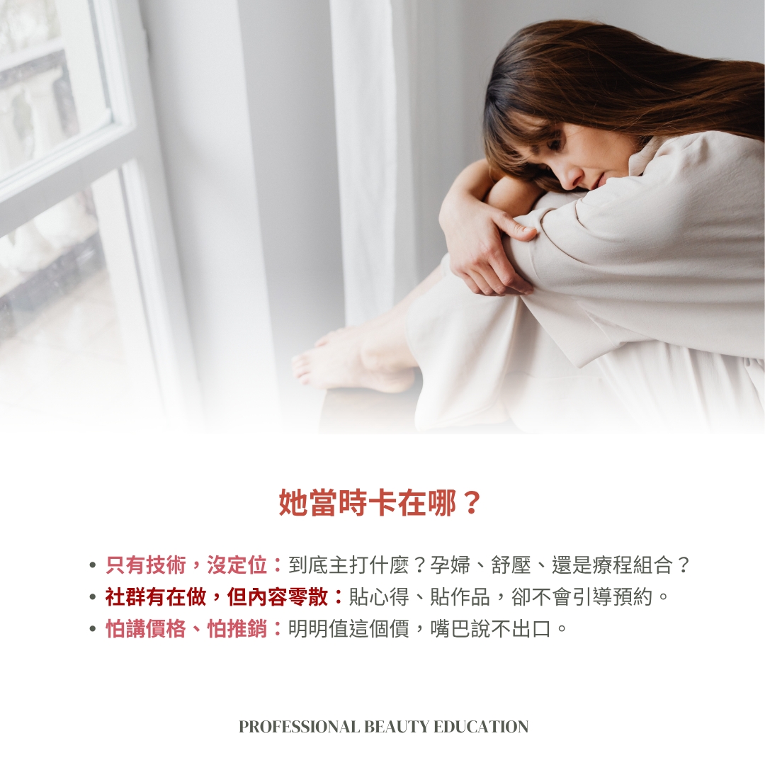 • 只有技術,沒定位:到底主打什麼?孕婦、舒壓、還是療程組合?
