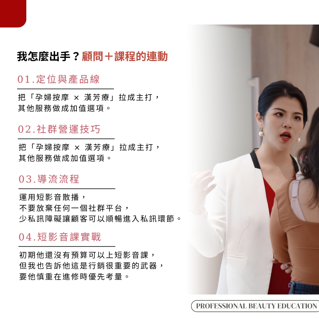 後來她先報名了我的美業顧問課程,讓我診斷了她社群經營方向,