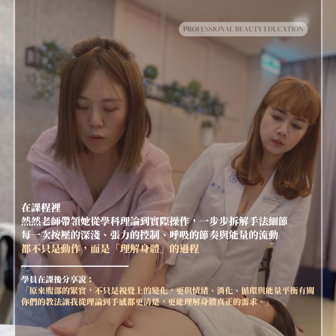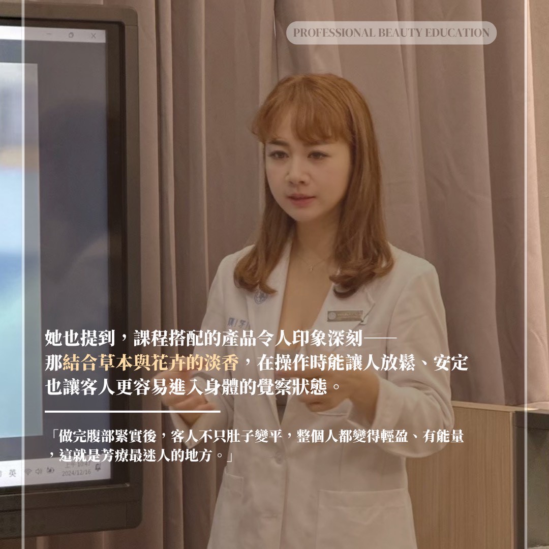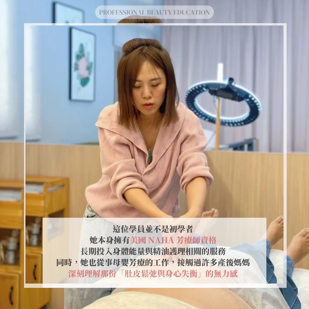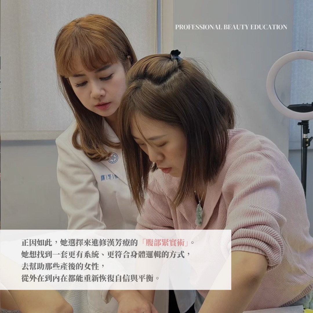 正因如此,她選擇來進修漢芳療的「腹部緊實術」