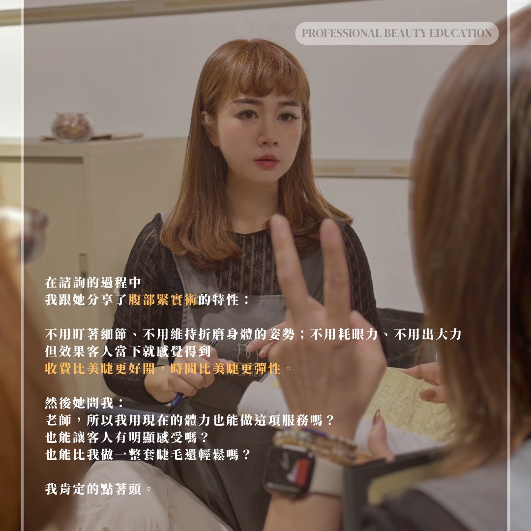 上週我突然收到腹部緊實術課程的諮詢預約,原來是多年前的美睫學員。